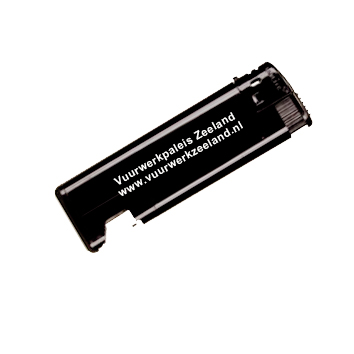 aansteker bedrukt met Vuurwerkpaleis Zeeland. Tevens als flesopener tegebruiken. Vuurwerk afsteken is immers een dorstig karweitje.