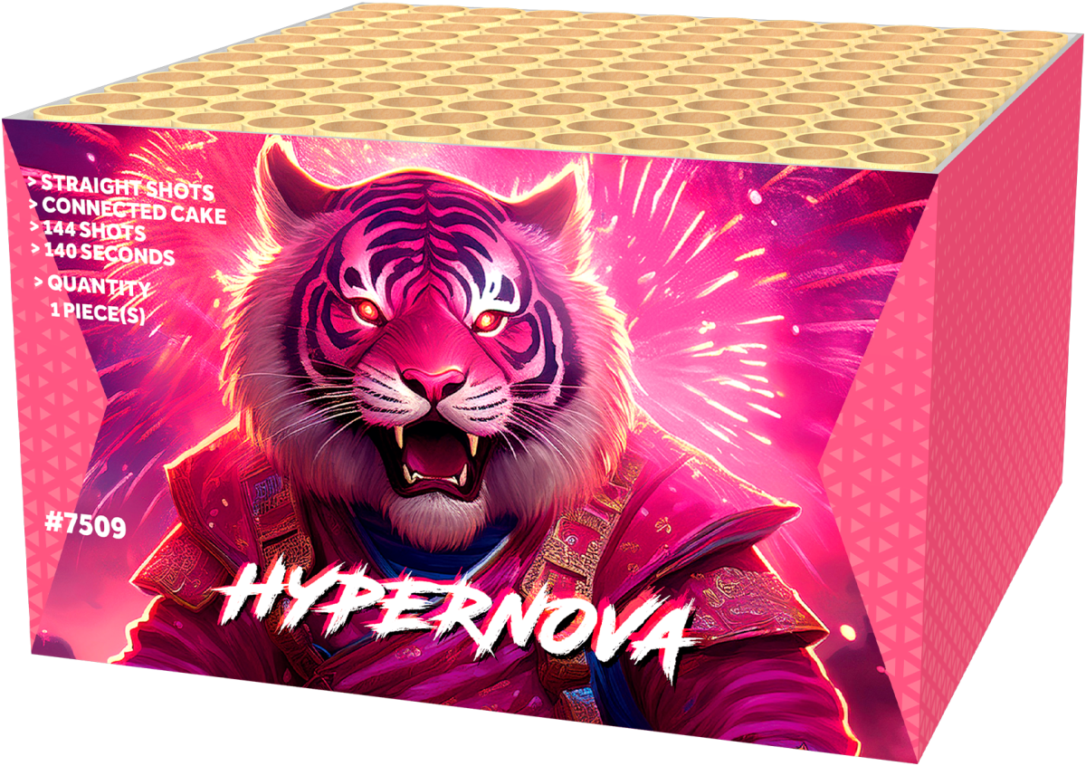 Hypernova ontketent een kosmische lichtshow met één lont. 2 KG pure power schiet 144 keer de lucht in en vult het donker met goud, zilver en heldere kleuraccenten. Crackling sterren en blinkende effecten bouwen op naar een finale die alles overstemt. Een complete compoundbox voor iedereen die zijn straat wil laten schitteren met luxe en impact.