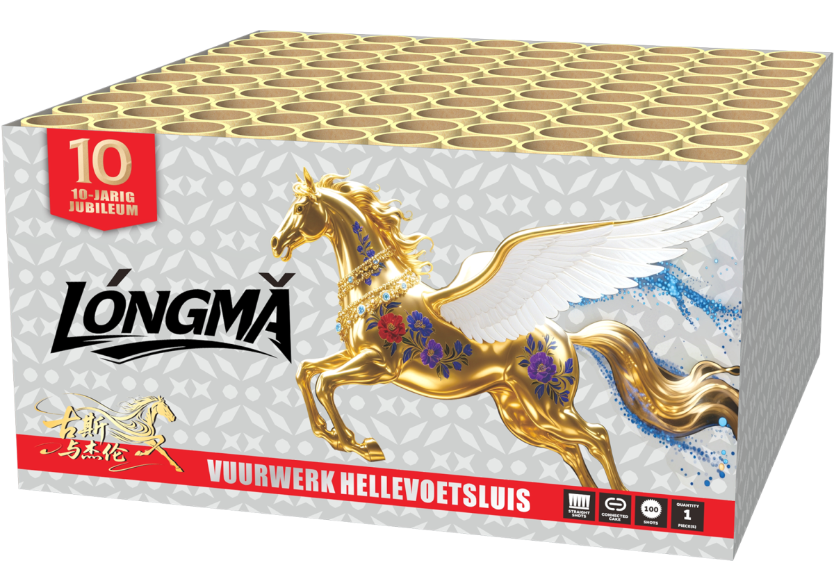Deze indrukwekkende 100-schots compound zorgt voor een complete vuurwerkshow in één box! Geniet van 2KG aan schitterende gold ti willows die elegant aan de hemel hangen, gecombineerd met een kleurrijk palet van rode, blauwe, oranje en paarse sterren. Daarbovenop zorgen de gold ti willows met crackling, rode en gele plums voor extra diepte en variatie. De afwisseling in tempo en de krachtige salvo's maken dit tot een echte showstopper – een spektakelstuk waarmee je gegarandeerd de show steelt in jouw straat!