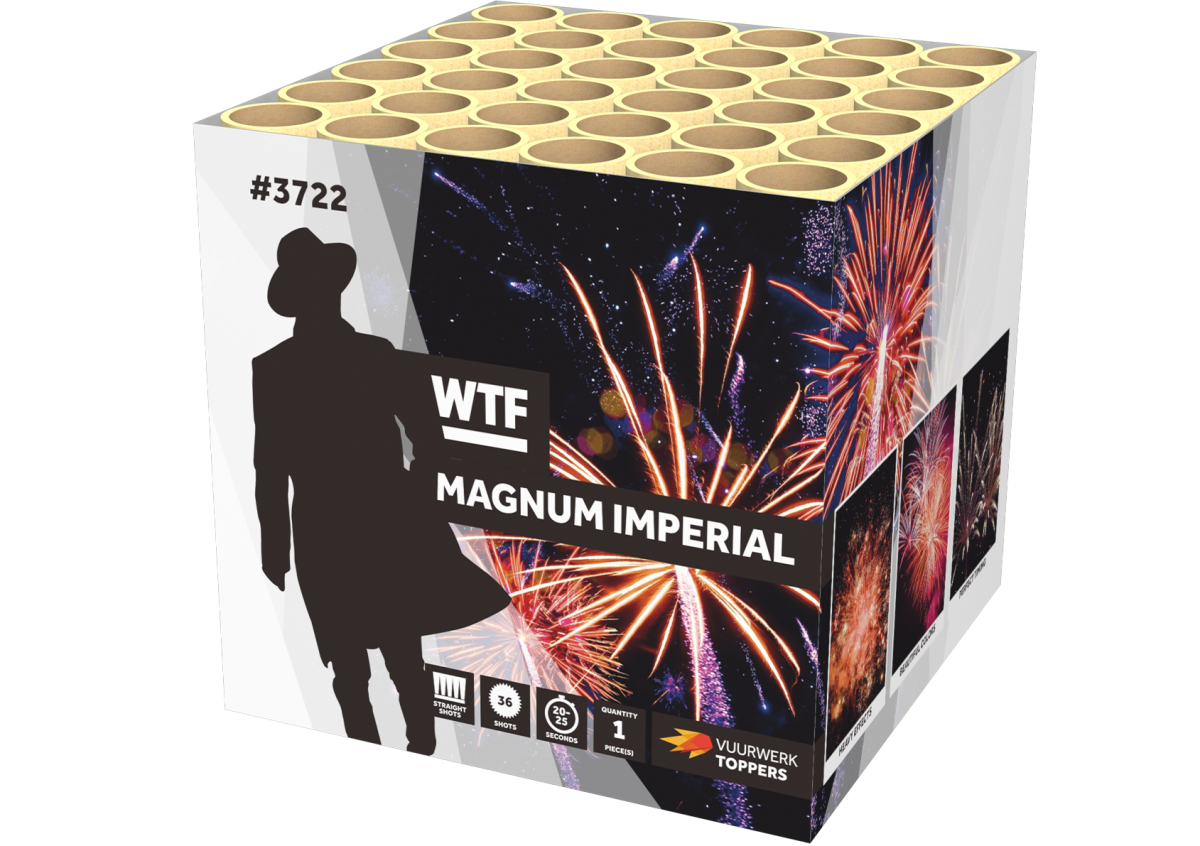 36 shots met een prachtige variatie aan effecten, dat brengt de Magnum Imperial! Met zijn 500 GRAM kruit is de Magnum Imperial is een ware Vuurwerktopper!