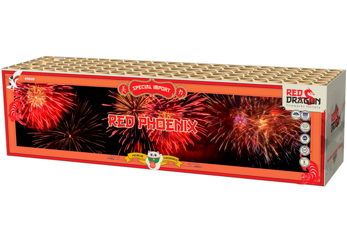Deze vurige feniks stijgt op uit het niets en vult de hemel met diep rood, felblauw, groen en paars. Ruim 1,5 KG aan krachtige effecten zoals Glitter Willow en White Ghost maken de show compleet. Rood voert de regie. Jij de show.