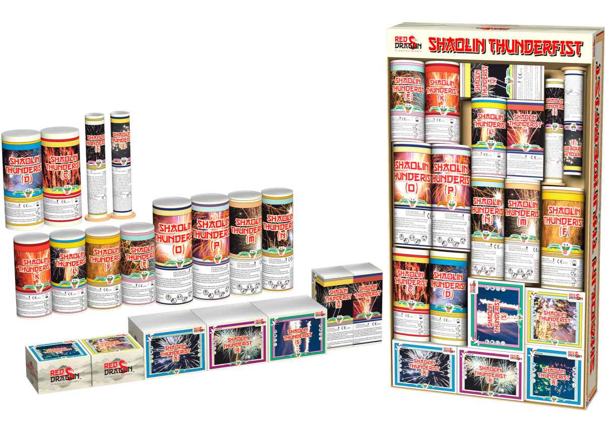 Het ultieme oosterse vuurwerkpakket. De grootste in de serie. Shaolin Thunderfist brengt een explosieve mix van 10 fonteinen, 2 vierkante fonteinen, 5 cakes en 2 mines. Alles draait om balans, kracht en indrukwekkende showwaarde. Een pakket dat z’n naam eer aandoet.