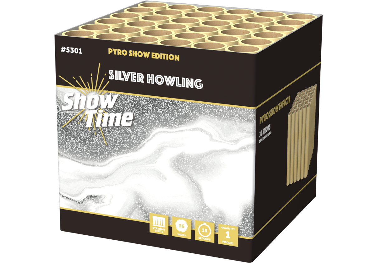 500 GRAM powercake met scherpe, zilveren fluiters. Deze 36 shots cake biedt een strak zichtbeeld en ritmische whistling klanken die je show extra pit geven. 25 mm kaliber zorgt voor stevige hoogte en impact.