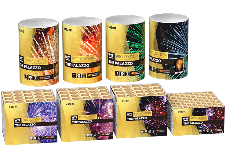 The Palazzo, een mega pakket bestaande uit 3 cakes van 20 schoten (totaal 60 schoten), 4 spectaculaire fonteinen en een 100 schots missile cake! Met dit pakket koop je in totaal maar liefst 168 krachtige schoten! De cakes zijn gevuld met prachtige sierlijke effecten die hoog in de lucht uiteenspatten. De fonteinen produceren prachtige glitter effecten die jouw straat zullen verlichten! En vergeet de fluiters niet die ieders aandacht trekken. Een pakket om met je hele familie van te genieten. Op zoek naar een groter pakket? Kijk eens naar het pakker 4530, Bellagio, in de Vuurwerktoppers webshop!