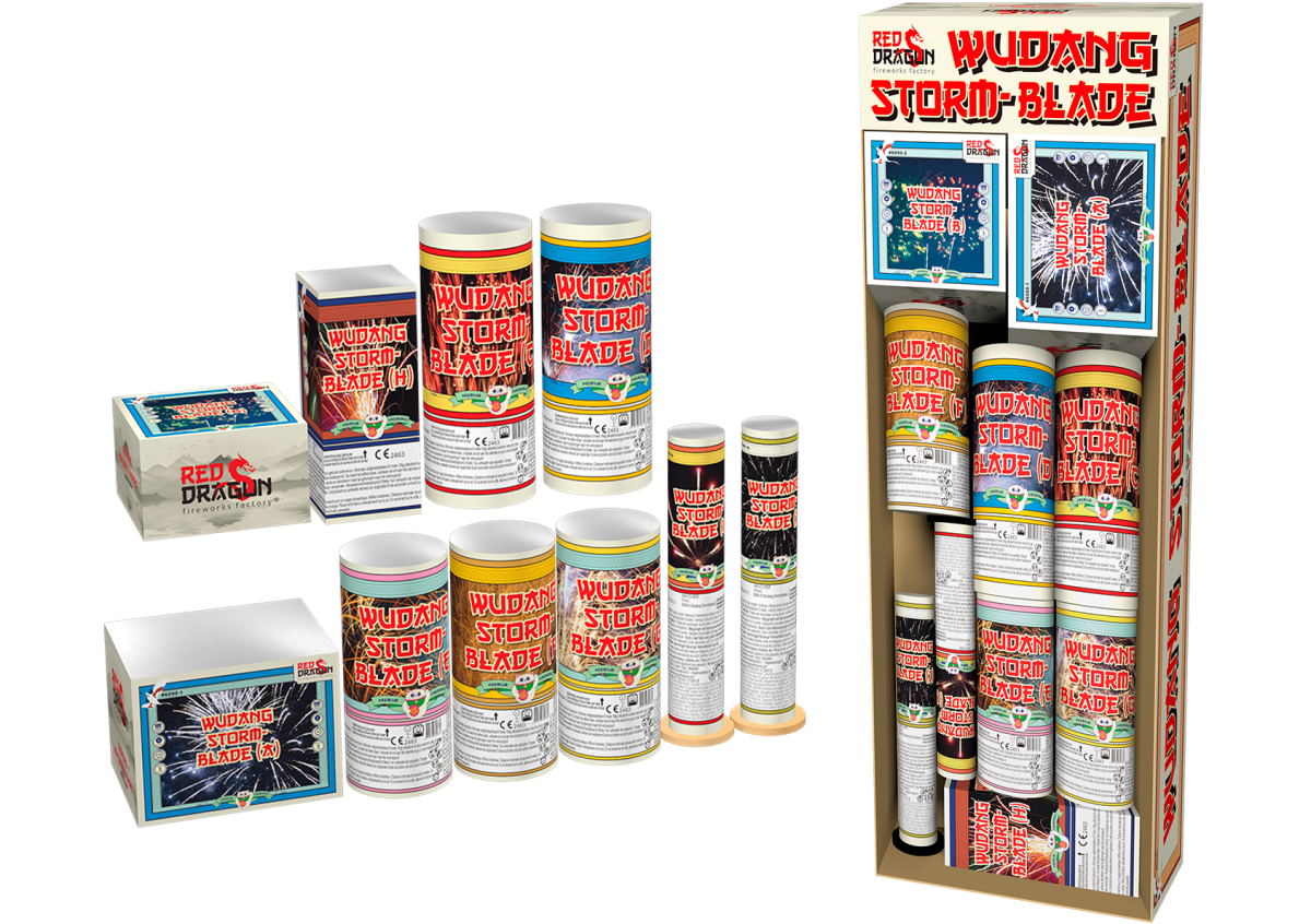 Een Oosterse show vol variatie! De Wudang Stormblade brengt je een complete mix van 5 fonteinen, een vierkante fontein, 2 cakes en 2 mines.